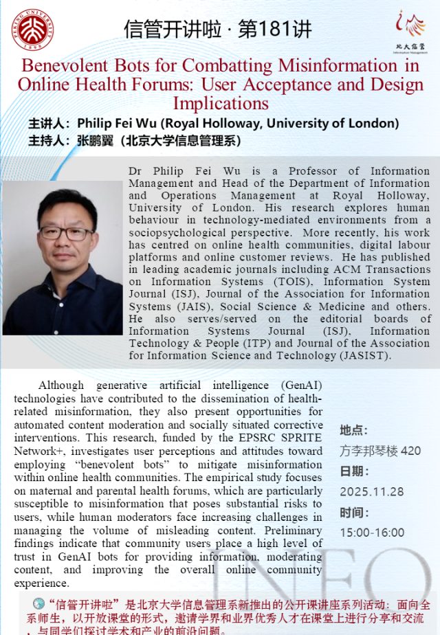 信管开讲啦·第181讲 | 在线健康论坛中对抗虚假信息的善意机器人:用户接受度与设计启示