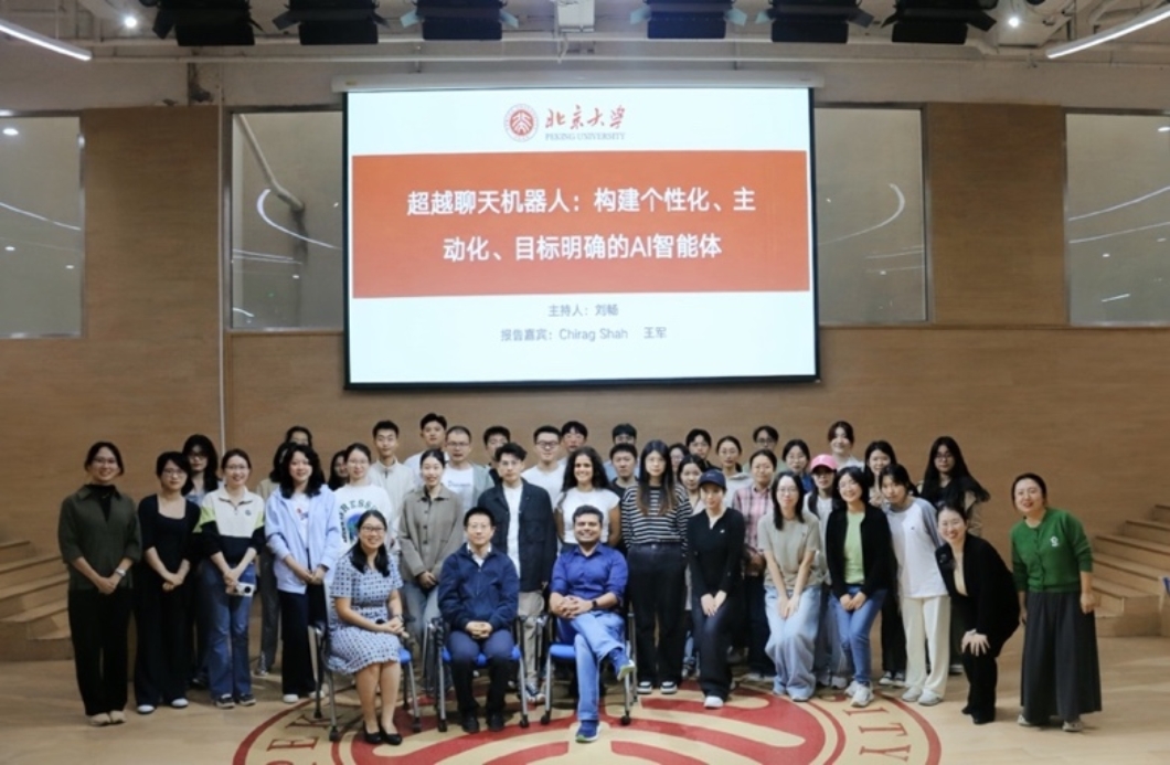 9月23日下午,“数字与人文 · 国际讲坛”第一期暨“信管开讲啦 · 第160讲”在北京大学双创中心联合举办。本期讲座以“超越聊天机器人:构建个性化、主动化、目标明确的AI智能体”为主题,华盛顿大学西雅图校区信息与计算机科学教授Chirag Shah担任主讲嘉宾,北京大学信息管理系、北京大学数字人文研究中心主任王军教授担任与谈嘉宾,北京大学社会科学部副部长郭琳出席活动。讲座由北京大学信息管理系情报学教研室主任、长聘副教授刘畅主持。活动吸引了来自北京大学信息管理系、历史学系、燕京学堂等多个院系的师生,以及来自南开大学、北京师范大学等多所大学的师生积极参与。
